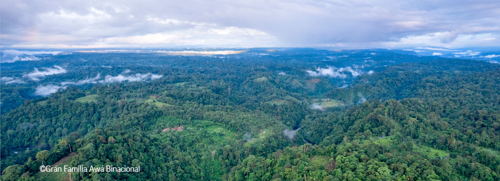 El territorio del pueblo Awá abarca una amplia región binacional entre el suroccidente de Colombia (Nariño y Putumayo) y el noreste de Ecuador (Esmeraldas, Carchi, Sucumbíos e Imbabura), conformada por bosques, manglares y ríos de gran biodiversidad, en el hotspot Andes Tropicales