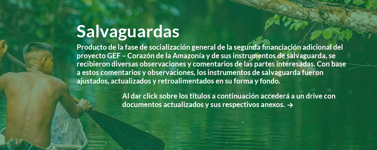 La Iniciativa se desarrolla en las siguientes áreas protegidas: PNN Serranía del Chiriviquete, PNN La Paya, Serranía de los Churumbelos, PNN Alto Fragua, PNN Sierra de la Macarena, PNN Tinigua, PNN Cordillera de los Picachos, Parque Natural Regional Mirafloes Picachos,Reserva Nacional Natural Nukak, Santuario de Flora y Plantas Medicinales Orito Ingi - Ande, Humedal RAMSAR Estrella Fluvial Inírida y Humedal RAMSAR Lagos de Tarapoto.